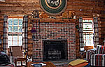 fireplace, exposed beams, cathedral ceiling, sky lights,