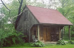Wide board floors and a corner wood stove add to the character